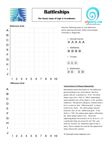 Show ImageSimple And Complex Printable Battleship Game For Students Teaching Resources